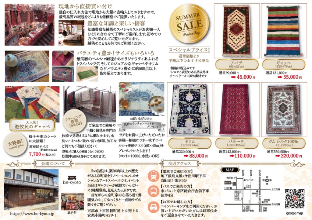 今月も私たちは全国津々浦々、数々の会場でペルシャン・ラグ・バザールを開催しておりますが、京都市でのイベントが決定しましたのでお知らせいたします!