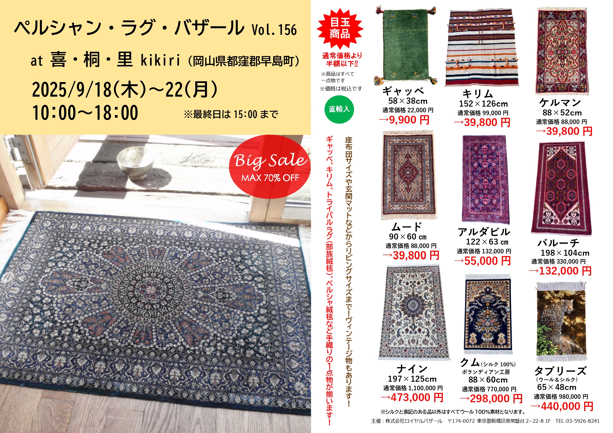 『ペルシャン・ラグ・バザール Vol.156 at 喜・桐・里 kikiri』