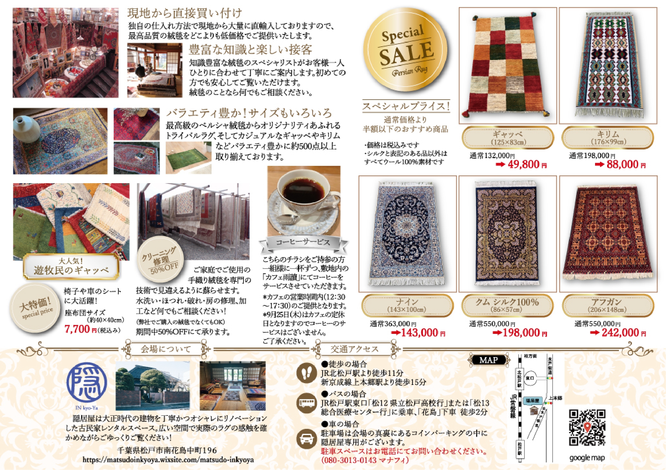 【9/25(木)- 29(月)千葉県松戸市】大正時代にタイムスリップした空間で本格手織り絨毯の大セール開催
