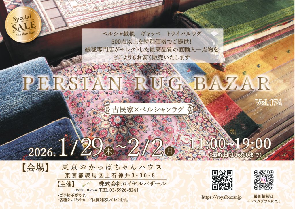 ギャッベギャッベセールギャッベ安いキリムトライバルラグペルシャンラグバザールペルシャ絨毯ラグセールロイヤルバザール古民家イベント石神井イベント練馬古民家