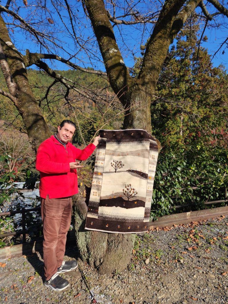 全て手作業、染色も天然の草木染で作られる手織り絨毯は、大自然とベストマッチします。