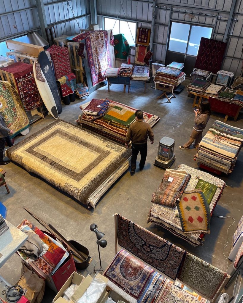 ギャッベ、ペルシャ絨毯、トライバルラグ、キリムなど、伝統も産地も異なるラグたちがずらりと並びます。