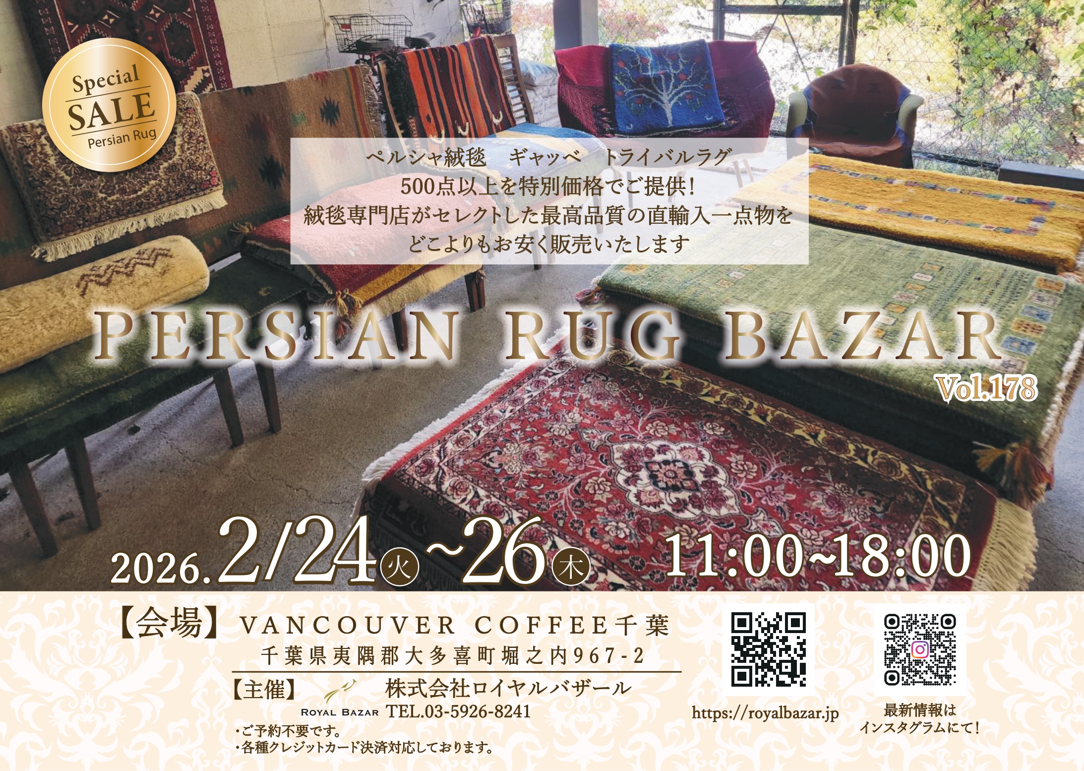 ギャッベギャッベセールギャッベ安いギャベキリムトライバルラグバンクーバーコーヒーペルシャンラグバザールペルシャ絨毯ラグセールロイヤルバザール千葉カフェ房総カフェ