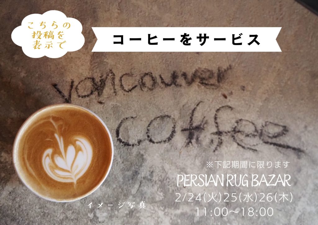 私たちロイヤルバザールと「バンクーバーコーヒー」は長い付き合いで、今までも厚木、あきる野市などにある、最高にお洒落な店舗でラグのセールを開催させていただきました。