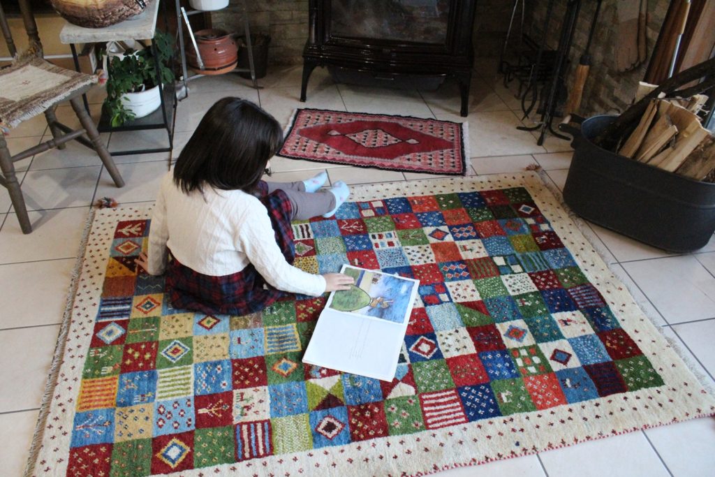 ふんわりと厚いウールが心地よいギャッベは、使い込むほどに味わいが増す、いとおしい手織りラグです。