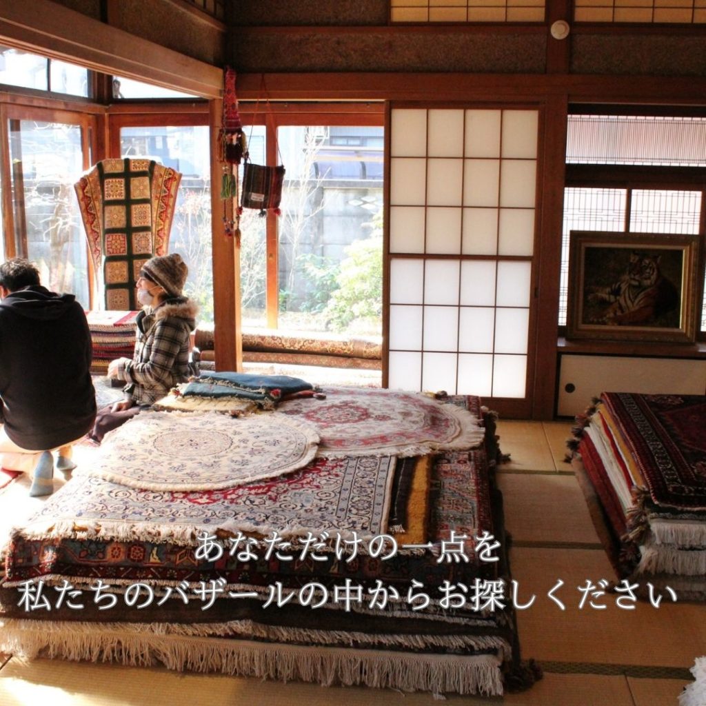 ペルシャから直輸入したギャッベ、トライバルラグ、ペルシャ絨毯やキリム、さらにアフガニスタンやトルコなどの大小さまざまなサイズ、種類の本格的な手織りラグでいっぱいになります!