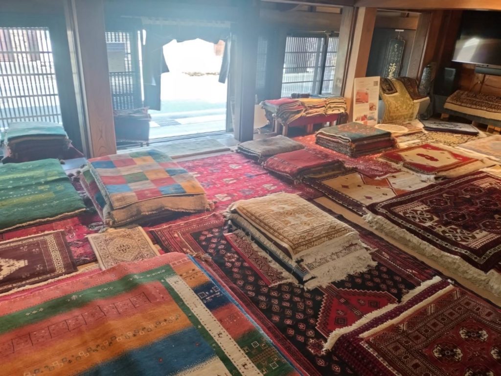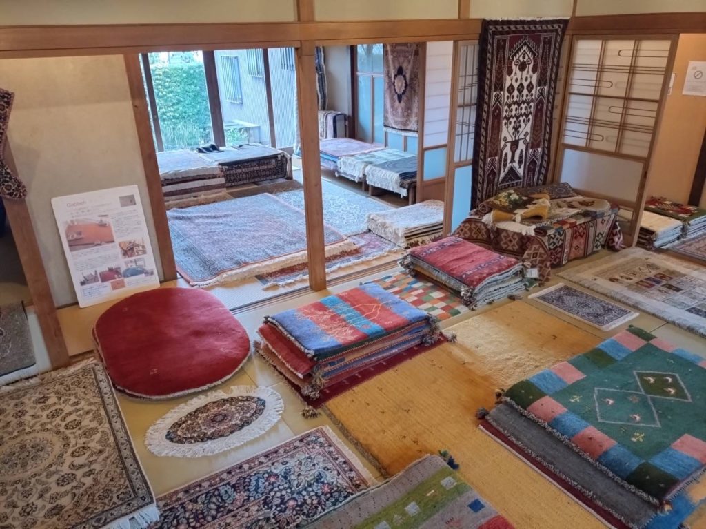 こちらの「和館宿」という情緒たっぷりの離れの一軒家に、500点以上の色とりどりの絨毯を敷き詰めて最大70%オフという大変お得なセールを開催させていただきます!